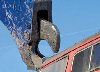The alloyed metal is placed in a hopper by an excavator. The majority of the hoppers are also able to exert lateral pressure on the material, compressing the metals so that larger pieces are also pushed under the shears. The cutting length can be adjusted. The operator controls the shears from a control station or a loading machine. TSR operates facilities that have a cutting force of up to 1,250 tonnes as well as excavators equipped with hydraulic shears. These can be used to cut up pieces of the metals that are particularly large or heavy.